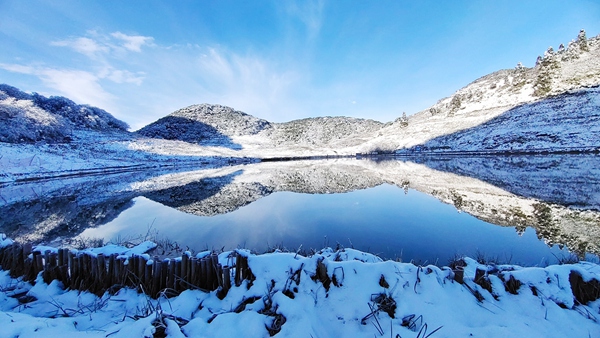 金佛山雪后初霽,藥池壩景點在藍天白雪的掩映下猶如畫卷。官小康攝