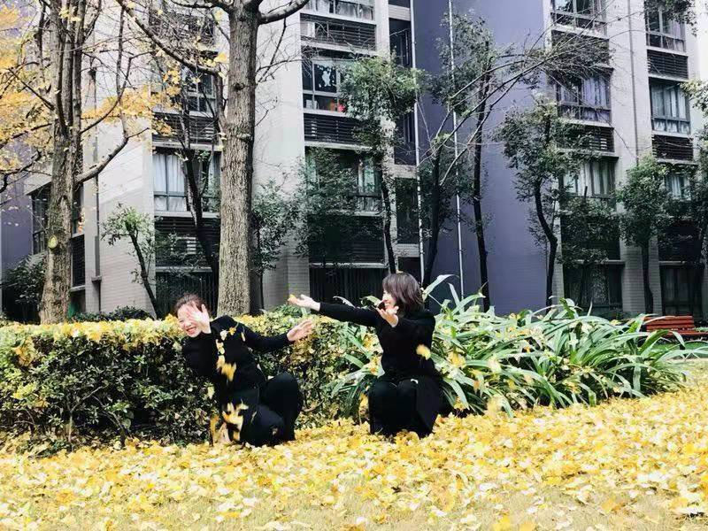 周雨(右)和團(tuán)隊(duì)的秋葉時(shí)光。龍湖供圖
