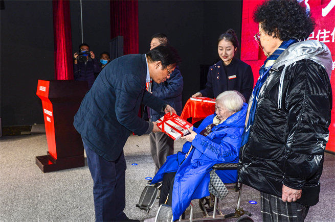 向紅巖英烈家屬代表捐贈《永遠記住你》書籍音像制品。黃卓攝