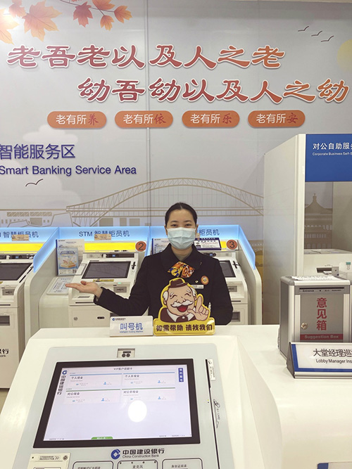適老服務(wù)設(shè)施。置身“歡樂老家”,該行在網(wǎng)點為老年客戶精心配置的各類適老服務(wù)設(shè)施一應(yīng)俱全,滿足安全、舒適、健康、應(yīng)急的需求。網(wǎng)點還設(shè)置了專用停車位、無障礙通道、應(yīng)急呼叫按鈕、輪椅停放區(qū)、移動填單臺、愛心座椅,在“勞動者港灣”里配備了飲水裝置、手機(jī)充電器、輪椅、拐杖、血壓儀、助聽器、放大鏡、大字版計算器、溝通手寫板、報刊雜志、雨傘等物品。