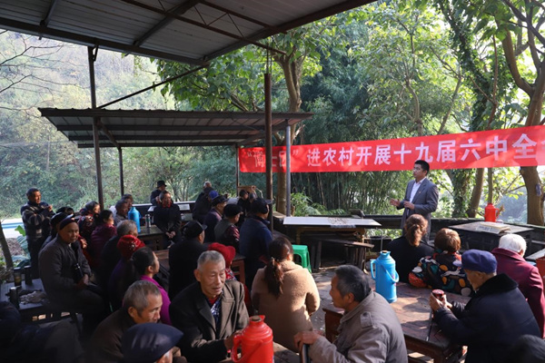 人民網(wǎng)重慶12月2日電 12月2日,在渝北區(qū)玉峰山鎮(zhèn)龍門村,一場別開生面的“板凳課堂”正式開講。幾十名村民坐在小板凳上,在冬日暖陽下,認真聆聽玉峰山鎮(zhèn)掛職干部、玉峰山鎮(zhèn)“博士團”成員楊緒洪講黨的十九屆六中全會精神,分享學(xué)習(xí)全會精神的體會、感悟和收獲,共話鄉(xiāng)村振興。