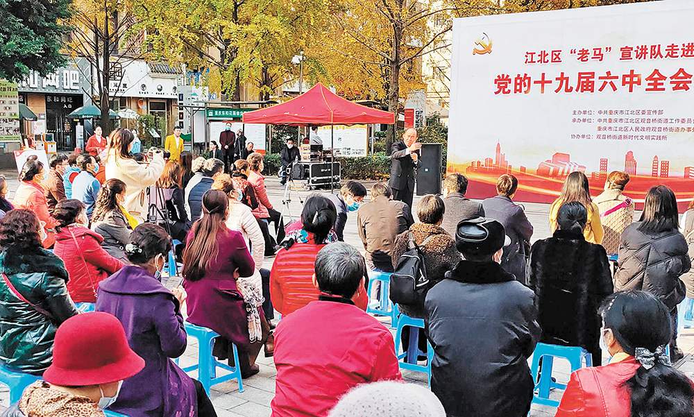 12月1日,江北區(qū)觀音橋街道桃源社區(qū),“老馬”宣講隊(duì)正在宣講黨的十九屆六中全會(huì)精神。記者 崔力 攝/視覺(jué)重慶