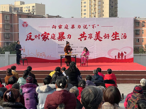 舞蹈《一家親》《記著咱的家》和小品《對(duì)家暴說(shuō)“不”》將活動(dòng)推向高潮,贏得了現(xiàn)場(chǎng)觀眾陣陣掌聲。在知識(shí)競(jìng)答環(huán)節(jié),主持人通過(guò)問(wèn)答互動(dòng)的方式向居民宣講什么是家庭暴力、如何預(yù)防和制止家庭暴力,以及反對(duì)家庭暴力的相關(guān)法律法規(guī)。