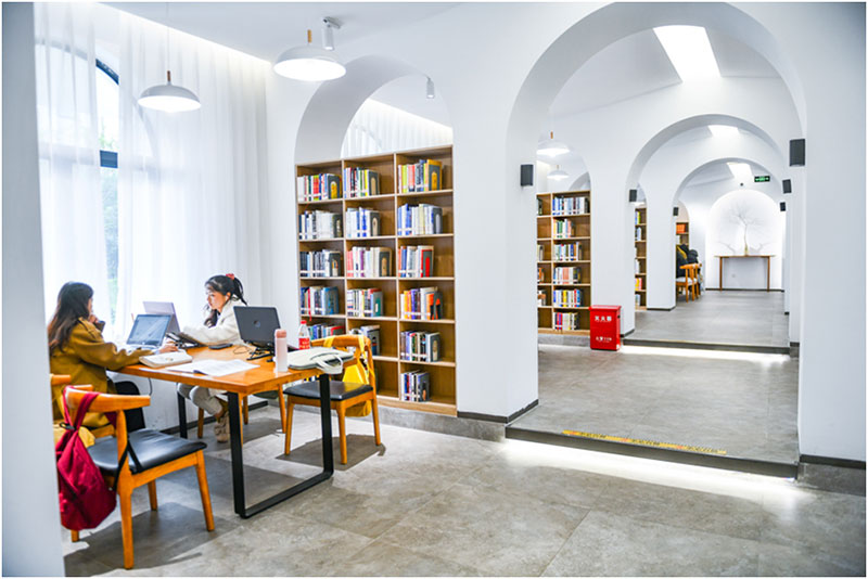 重慶大學虎溪校區(qū)黨工委副書記、學工辦主任韋迎春介紹,為豐富學生舍區(qū)文化氛圍,重慶大學根據(jù)虎溪校區(qū)面積大、學生利用圖書館不方便的實際情況,為方便距離圖書館較遠師生就近借閱和學習,虎溪校區(qū)管委會和圖書館、出版社合作,在學生公寓園區(qū)內(nèi)建有“問梅齋”“攏翠齋”“蕉林齋”“聽松齋”“蕙風齋”五個舍區(qū)書屋。每個書屋還根據(jù)就近入住學生的學科專業(yè)投放相關(guān)的文獻資料,學生可以在此借閱和歸還圖書。