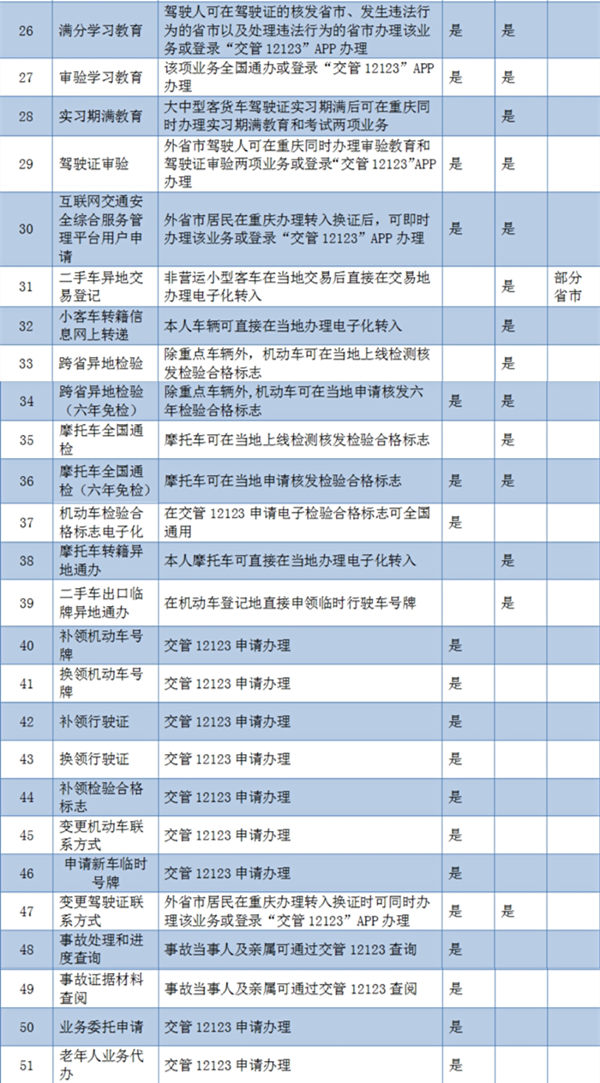 人民網(wǎng)重慶12月9日電 過去,一些公安交管業(yè)務(wù)往往需要回原籍辦理,群眾往返費(fèi)時費(fèi)力費(fèi)錢。12月9日,重慶市公安局交巡警總隊發(fā)布消息,近年來,重慶市公安交管部門從推行異地車檢、異地考證、異地處理交通違法,再到“互聯(lián)網(wǎng)+交管”改革,不斷推進(jìn)跨省辦理機(jī)制革新,50余項公安交管業(yè)務(wù)逐漸實現(xiàn)異地辦、網(wǎng)上辦、就近辦。