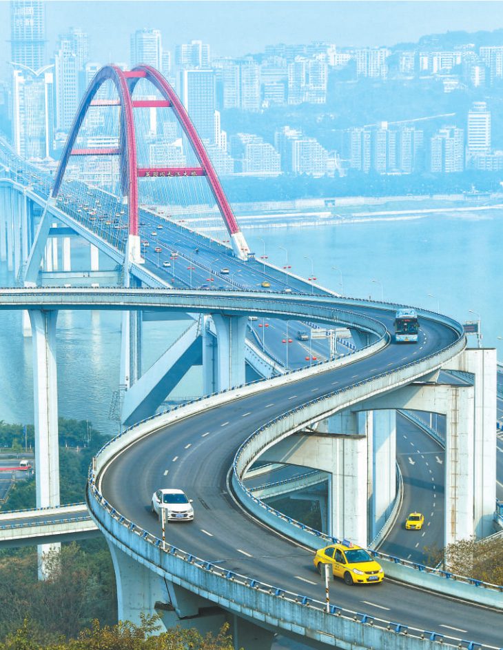 “十四五”規(guī)劃綱要提出,“建設(shè)現(xiàn)代化綜合交通運(yùn)輸體系”。作為交通基礎(chǔ)設(shè)施的重要組成部分,立交橋成為南來北往車輛高效通行的捷徑,是現(xiàn)代化綜合交通運(yùn)輸體系中不可或缺的一環(huán)。因地制宜、合理規(guī)劃,立交橋?yàn)榫徑獾缆窊矶、提高行車安全性提供了解決方案;縱橫交錯(cuò)、四通八達(dá),立交橋既提升了城鄉(xiāng)互聯(lián)互通水平,更為經(jīng)濟(jì)社會(huì)發(fā)展提速;造型各異、設(shè)計(jì)科學(xué),立交橋是道路建設(shè)技術(shù)水平的直觀體現(xiàn),是交通發(fā)展成就的特色名片,以其獨(dú)特雄姿成為各地亮麗風(fēng)景。