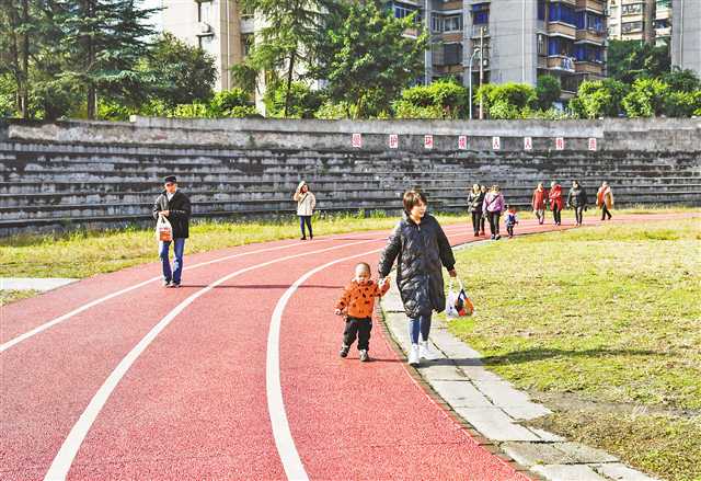 近日,巴南區(qū)蓮花街道大江足球場,市民在新修的跑道上散步。該球場此前年久失修,長期荒廢,不久前經(jīng)改造、修繕恢復(fù)使用功能后成了周邊居民休閑健身好去處。