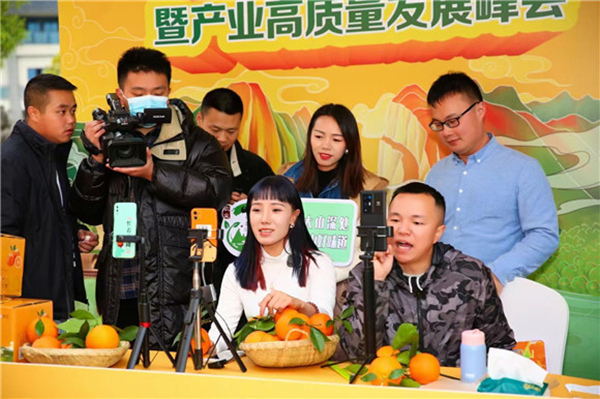 現(xiàn)場(chǎng)直播帶貨助力銷售轉(zhuǎn)型。 巫山縣果業(yè)發(fā)展中心供圖