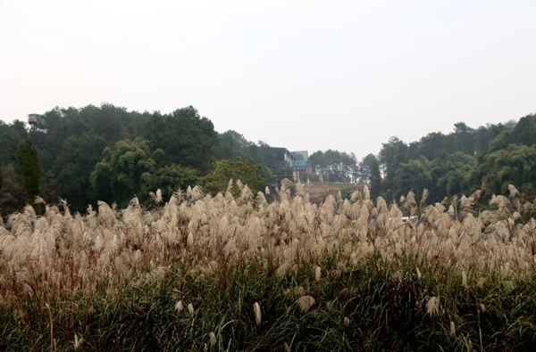 在涪陵區(qū)藺市街道,坐美心紅酒小鎮(zhèn)景區(qū)觀光索道3號線登頂泡桐村山頂,向后山走不到200米,山頭和田坎上遍野都是芒草花,蒼茫如雪。