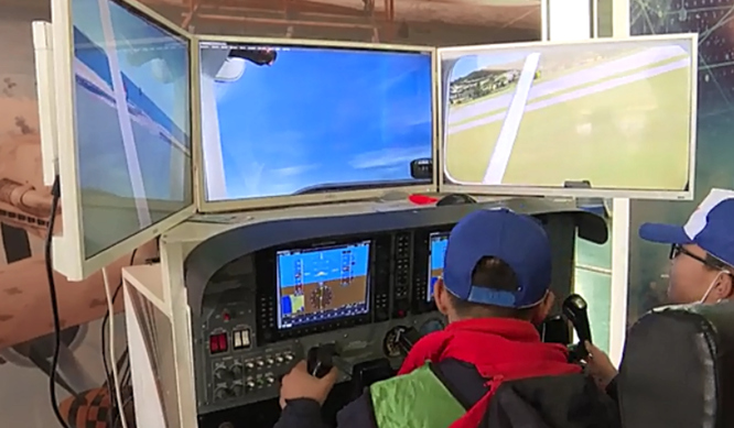 同學(xué)們?cè)谌A夏航空科普基地學(xué)習(xí)航空知識(shí)。梁平區(qū)委宣傳部供圖