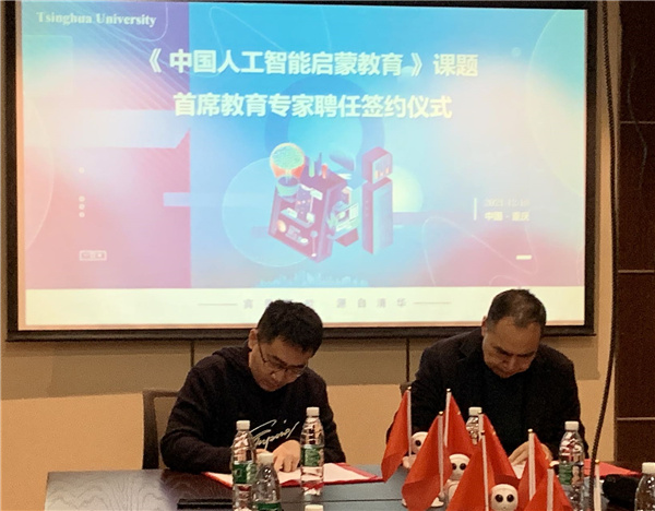 活動現(xiàn)場,清華大學(xué)人工智能研究院智能機器人研究中心聘請重慶三峽教育文化研究院院長陳定凡為《幼小兒童人工智能啟蒙教育》課題組組長。