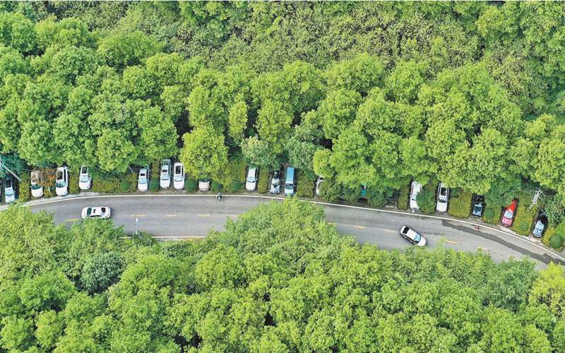 九月十二日,江北區(qū)鐵山坪森林公園,前來游玩的市民將汽車停在生態(tài)停車位上。記者 崔力 攝\視覺重慶