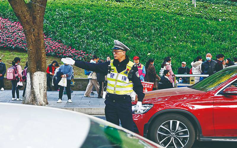 “當(dāng)每臺車輛停好后,他都會主動上前幫忙開門;當(dāng)見到有學(xué)生下車急著離開忘記關(guān)好車門時,他又會趕緊上前熱情地為駕駛員搭把手!边@一系列溫暖舉動,贏得了不少群眾夸贊,也被警風(fēng)監(jiān)督員看在眼里。