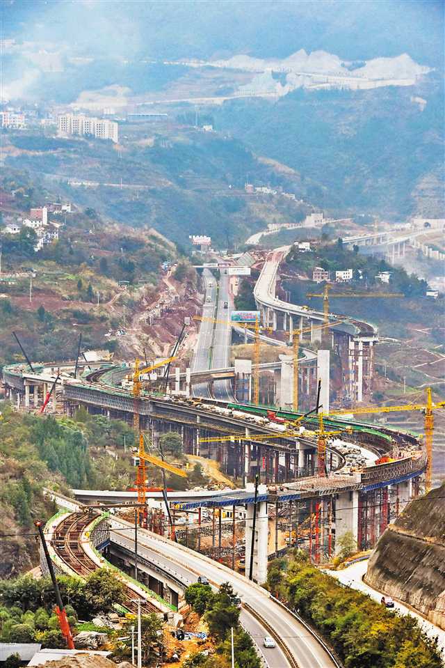 十二月十八日,建設(shè)中的巫(山)大(昌)高速龍井互通立交。特約攝影 王忠虎\視覺(jué)重慶