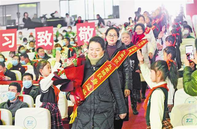 12月22日,重慶鐵路中學(xué)星光禮堂,“黨在我心中”——2021年度重慶好人禮贊活動(dòng)舉行。圖為重慶好人進(jìn)場(chǎng)受到熱烈歡迎。記者 盧越 攝/視覺重慶
