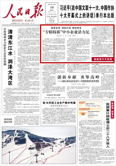 習(xí)近平總書記指出,“我國中小企業(yè)有靈氣、有活力,善于迎難而上、自強(qiáng)不息”“要發(fā)揮企業(yè)家精神和工匠精神,培育一批‘專精特新’中小企業(yè)”!笆奈濉币(guī)劃和2035年遠(yuǎn)景目標(biāo)綱要提出,推動中小企業(yè)提升專業(yè)化優(yōu)勢,培育專精特新“小巨人”企業(yè)和制造業(yè)單項冠軍企業(yè)。日前舉行的中央經(jīng)濟(jì)工作會議要求,激發(fā)涌現(xiàn)一大批“專精特新”企業(yè)。