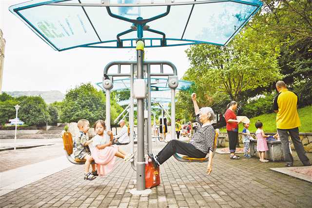 巴南區(qū)蓮花街道云篆山水公租房廣場,市民在智能健身器材上鍛煉。(本報資料圖片)記者 謝智強 攝/視覺重慶