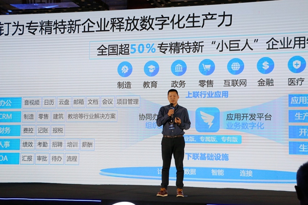 釘釘解決方案總經(jīng)理邱達就釘釘專精特新數(shù)字化解決方案展開演講。張艷攝