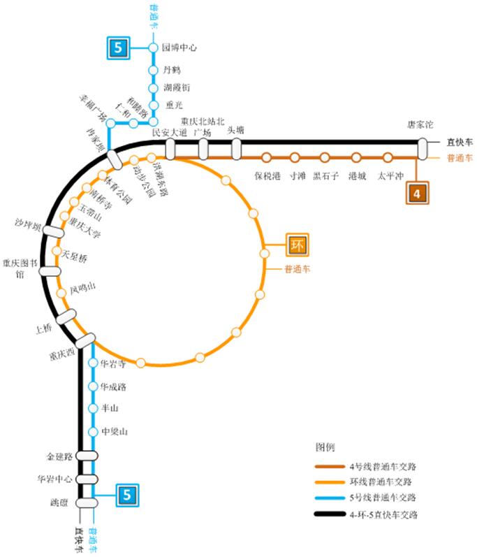 三線互聯(lián)互通直快車運營區(qū)段為重慶軌道交通唐家沱站~民安大道站~重慶西站~跳磴站,共?12座車站,與普通車相比,全程少停16個站,考慮平均候車及換乘步行時間,乘客可節(jié)約出行時間33分鐘,不僅更加快捷,還解決了當前5號線分段運營產(chǎn)生的過江問題。