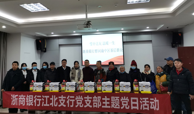 人民網(wǎng)重慶12月28日電 牛奶、大米、食用油、干貨......28日下午,在渝中區(qū)兩路口街道重慶村社區(qū)會(huì)議室,戶外的寒風(fēng)阻擋不了送溫暖的腳步。當(dāng)日,浙商銀行江北支行黨支部主題黨日活動(dòng)在這里舉行。他們以服務(wù)群眾獻(xiàn)愛心的方式,深入基層社區(qū),帶來新年的問候和祝福。