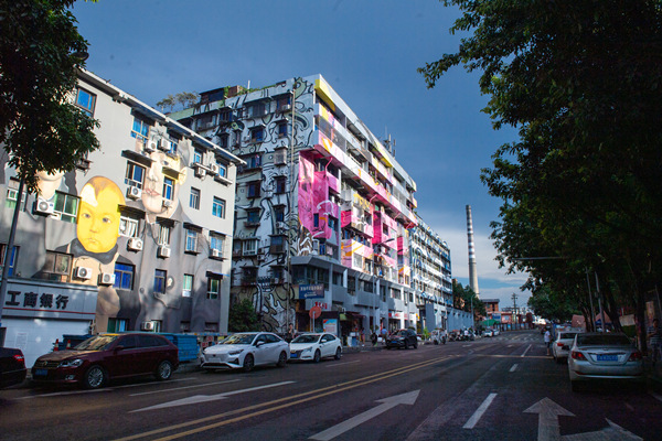 在九龍半島,除了重慶發(fā)電廠的蛻變,黃桷坪涂鴉街今年也完成了提檔升級(jí),共計(jì)改造11棟沿街樓棟,實(shí)施彩繪6000余平方米,不僅引入了羅中立、龐茂琨、張曉剛等10余位當(dāng)代藝術(shù)大家畫(huà)作,還建成了國(guó)內(nèi)罕見(jiàn)的全磚砌自由曲線殼體空間——涂鴉美術(shù)廊,為老牌網(wǎng)紅打卡地再添新看點(diǎn)。黃正街美術(shù)藝術(shù)項(xiàng)目位于重慶美術(shù)公園入口處,全長(zhǎng)約1500米,占地108畝,包含長(zhǎng)江燈塔、崖頂彩道、藝術(shù)碼頭、褶帶浮廊、藝術(shù)崖壁五個(gè)部分,建成后將為九龍半島再添一處旅游新地標(biāo)。