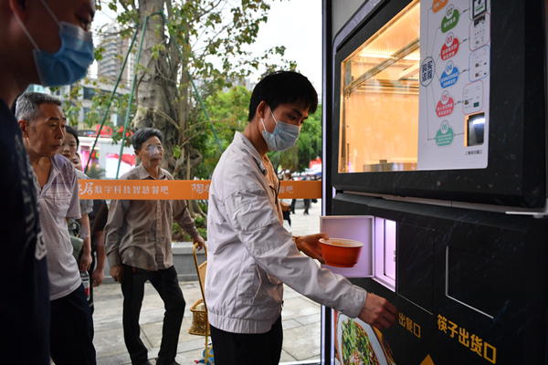 市民在陶然居數(shù)字科技智慧餐吧選購物品。周邦靜攝。