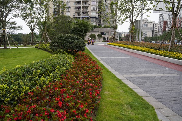 此外,北碚區(qū)還按照“一路一特色,一路一精品,一路一景觀”原則,將城區(qū)重要交通節(jié)點(diǎn)和主要干道的人行道整治與綠化景觀提升相結(jié)合,利用零星空地打造“眼可見、手可觸、身可入”的街頭綠地,拓展市民休閑空間,美化城市空間,開門見綠。2021年全區(qū)已完成雙元大道、康寧路、龍溪路、安禮路、云泉路等5個(gè)市級(jí)項(xiàng)目,提升面積7.6萬余平方米。