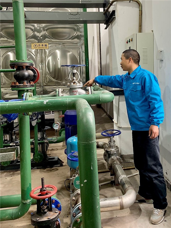 劉義彬現(xiàn)在是江小白酒廠特種設(shè)備員,負責(zé)管理鍋爐生產(chǎn)車間,這里相當(dāng)于整個酒廠的“心臟”。每天,在這里生產(chǎn)的蒸汽通過密集的管道網(wǎng)絡(luò)輸送至各個釀造車間一線,為釀酒設(shè)備提供熱能。