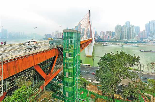 近日,南濱路,備受市民關(guān)注的東水門大橋垂直升降觀光電梯主體工程完工,目前正加緊實(shí)施邊坡治理和電梯調(diào)試收尾工作。該電梯連接?xùn)|水門大橋和南濱路龍門浩老街,解決了大橋與濱江路高差大、繞行遠(yuǎn)、步行不便的問題,為市民和游客構(gòu)建了一條觀賞重慶美麗江景的便捷通道。