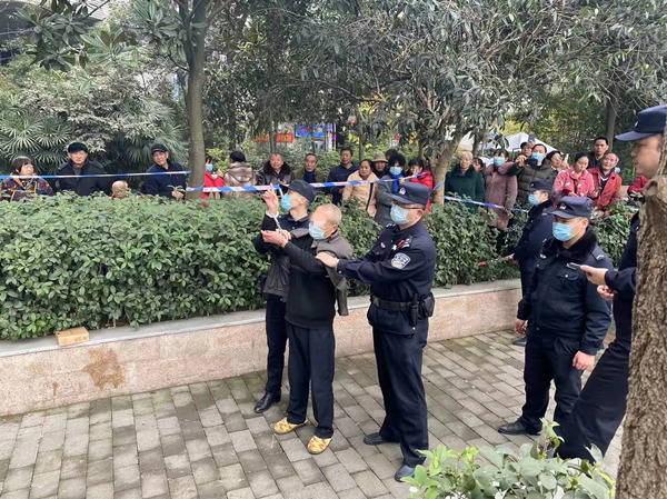 傅某指認(rèn)作案現(xiàn)場(chǎng)。渝中警方供圖