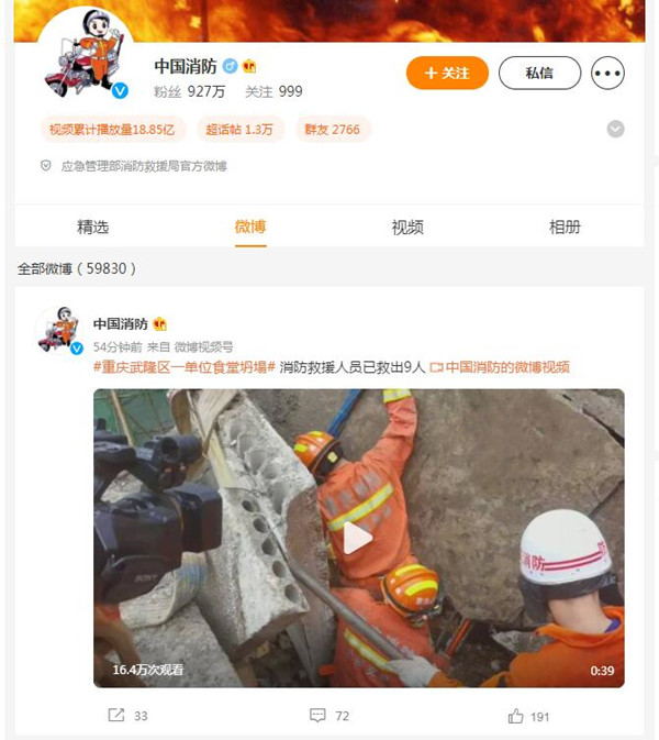 應(yīng)急管理部消防救援局官方微博“中國(guó)消防”截圖