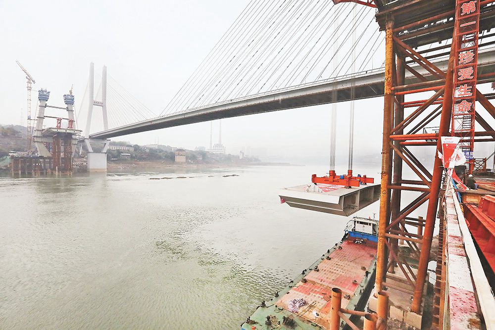 軌道交通18號(hào)線李家沱長江復(fù)線橋開始合龍施工