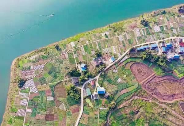 1月9日,鳥(niǎo)瞰廣安經(jīng)開(kāi)區(qū)護(hù)安鎮(zhèn)涌壩村利用渠江灘涂發(fā)展起來(lái)的無(wú)污染蔬菜基地一角。