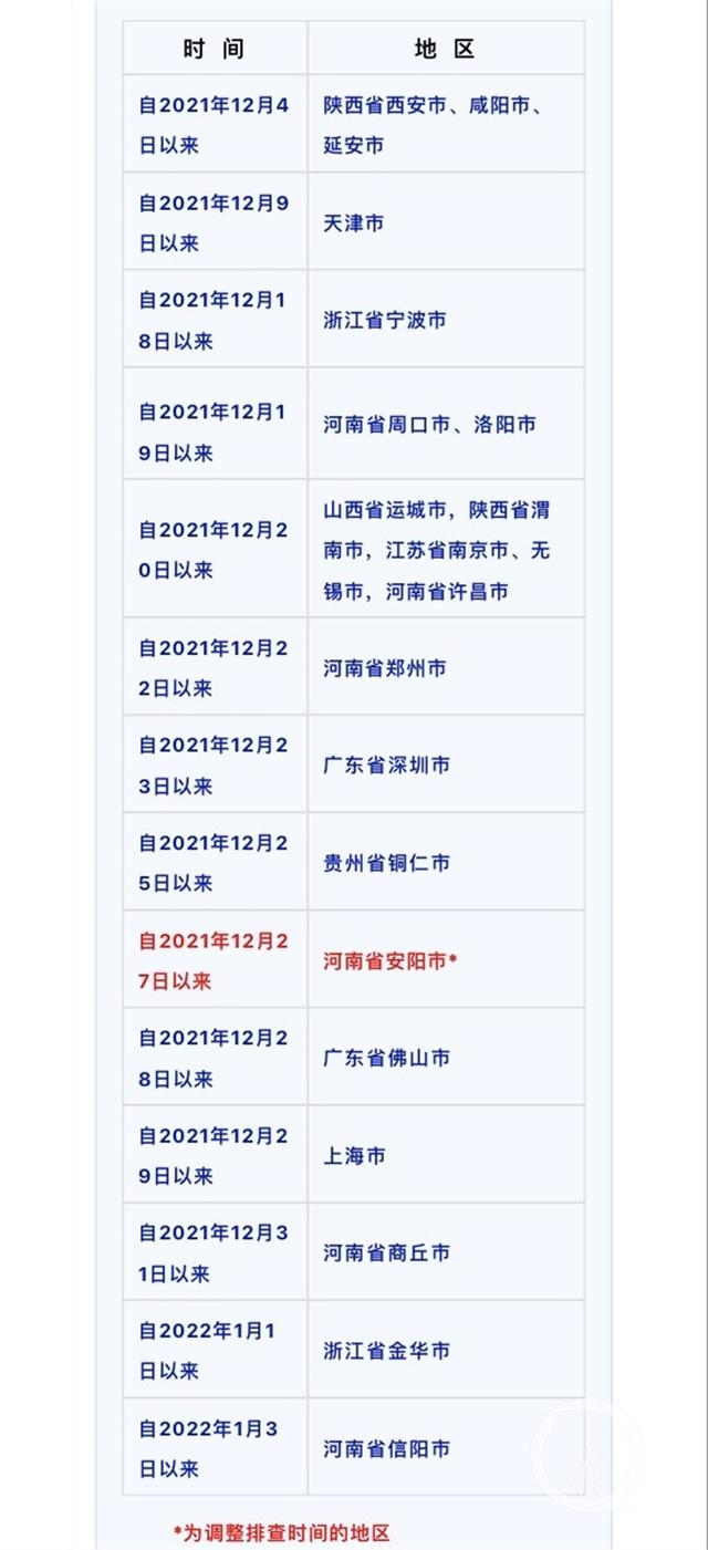請(qǐng)有以下時(shí)段和地區(qū)旅居史的來(lái)渝返渝人員,在做好個(gè)人防護(hù)的前提下,及時(shí)向所在地社區(qū)(村)、所在單位報(bào)告,按要求配合做好核酸檢測(cè)、健康監(jiān)測(cè)等各項(xiàng)防控措施。