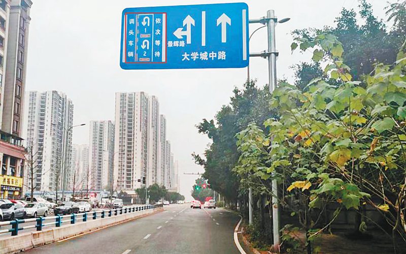 注意路口的這個(gè)新交通標(biāo)志 重慶首次推出“多車串聯(lián)掉頭”