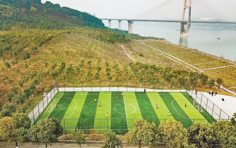 此前,該空地上非法傾倒了大量垃圾,最集中的一處更是形成了長(zhǎng)12米、寬9米的垃圾帶。在垃圾帶下方100余米處,便是長(zhǎng)江主干道。去年8月,江南街道辦事處將垃圾清除后,在此新建了一個(gè)社區(qū)足球場(chǎng),并持續(xù)對(duì)周邊區(qū)域進(jìn)行綠化與配套設(shè)施修復(fù)。“現(xiàn)在孩子們喜歡來這里玩耍,我們也經(jīng)常來散步!笔忻駥(duì)此稱贊不已。