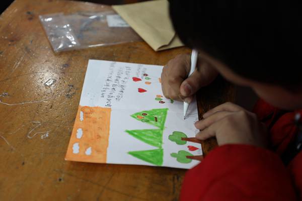 小朋友手寫賀卡送祝福。榮昌團(tuán)區(qū)委供圖
