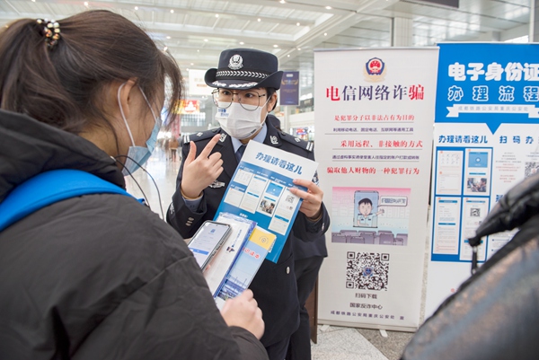 活動(dòng)中,重慶鐵路警方通過“全民反詐”宣傳展板向旅客展示常見詐騙手段,發(fā)放宣傳資料以案講法,引導(dǎo)旅客正確預(yù)防電信詐騙,向旅客推廣下載國家反詐中心APP,詳細(xì)講解各功能用法,切實(shí)提升群眾識(shí)騙防騙能力,從源頭遏制電信網(wǎng)絡(luò)詐騙。