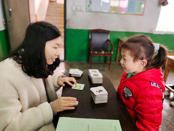 長沖小學(xué)里,老師和學(xué)生互動(dòng)。江津區(qū)教委供圖