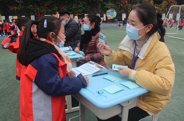 為切實(shí)減輕學(xué)生課業(yè)負(fù)擔(dān),江津區(qū)探索小學(xué)一二年級(jí)學(xué)業(yè)評(píng)價(jià)改革,部分學(xué)校將原來的“紙筆測試”調(diào)整為“游園會(huì)”形式,將各學(xué)科要求達(dá)成的核心素養(yǎng)融入到真實(shí)情境和游戲活動(dòng)中,真實(shí)呈現(xiàn)學(xué)生發(fā)現(xiàn)問題、解決問題、提出問題的能力。