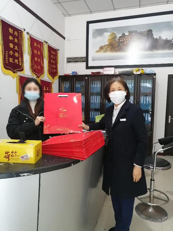 工作人員上門為社區(qū)群眾送春聯(lián)窗花、講解金融知識。交行重慶市分行供圖