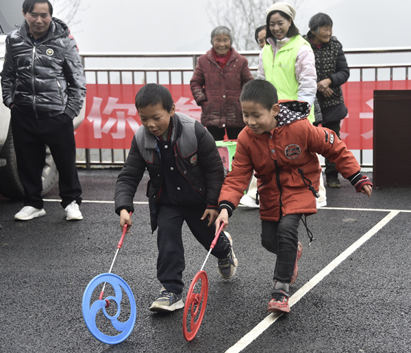 人民網(wǎng)重慶1月22日電 1月21日,時(shí)值寒冬,冷風(fēng)吹過(guò)山谷,但是涪陵區(qū)江東街道磨溪村的這群孩子卻感到十分溫暖。原來(lái),由涪陵區(qū)民政局和江東街道辦事處主辦,尚善社工承辦的迎新年趣味運(yùn)動(dòng)會(huì)在磨溪村舉行。孩子們帶著“闖關(guān)卡”開(kāi)始了“猜燈謎”、“滾鐵環(huán)”、“歡樂(lè)跳跳跳”、“滾滾樂(lè)”等精彩的互動(dòng)游戲。