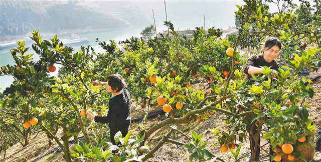一月十九日,巫山縣王家莊屋果樹專業(yè)合作社的工人正在采摘紐荷爾柑橘。當(dāng)?shù)乜茖W(xué)種植紐荷爾、默科特等優(yōu)質(zhì)柑橘品種,于二○二○年獲得農(nóng)業(yè)農(nóng)村部綠色食品認(rèn)證和重慶市海關(guān)批準(zhǔn)的出口資質(zhì)。特約攝影 王忠虎\視覺重慶