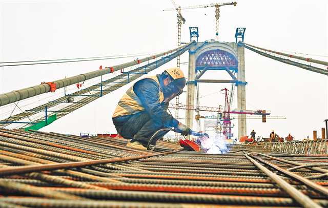 1月24日,郭家沱長江大橋施工現(xiàn)場(chǎng),工人正在加緊作業(yè)。臨近春節(jié),郭家沱長江大橋的建設(shè)者們堅(jiān)守崗位,加緊施工,確保工程進(jìn)度。目前大橋已吊裝39片鋼桁梁,完成總進(jìn)度的67%。