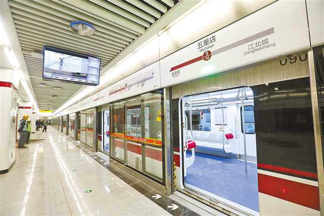 軌道九號(hào)線統(tǒng)一標(biāo)識(shí)為紫紅色,洋溢著喜慶的氣氛。記者 羅斌 攝\視覺重慶