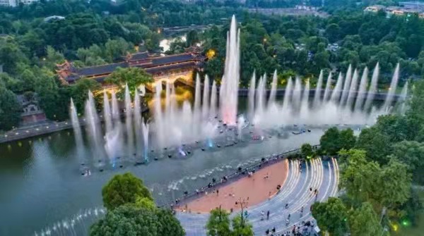 璧山區(qū)觀音塘國(guó)家城市濕地公園音樂(lè)噴泉。璧山宣傳部供圖