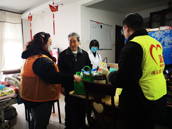 社區(qū)工作人員為部分黨員送去節(jié)日的溫暖和關(guān)懷。龍華社區(qū)供圖