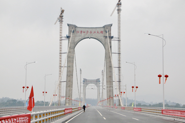 人民網(wǎng)重慶1月26日電 1月26日,橫跨長江兩岸的重慶市重點工程——江津白沙長江大橋建成通車。江津津西、津北片區(qū)的互聯(lián)互通有了更加便捷的通道,川南渝西地區(qū)的融合發(fā)展也迎來了新的機遇。