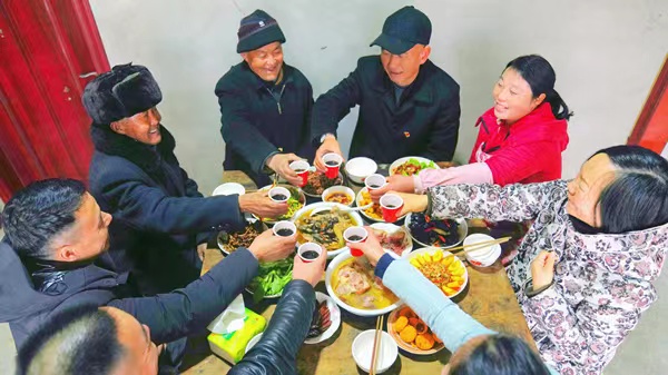 “今年子硬是好,團(tuán)年人氣旺,明年還會(huì)更好,歡迎鎮(zhèn)上村上的領(lǐng)導(dǎo)和黨員來(lái)到我屋里喲!编嵏4盒Φ醚劬Σ[了縫。