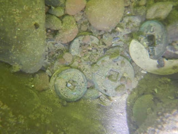 銅錢出水前影像照。 重慶市文物考古研究院供圖